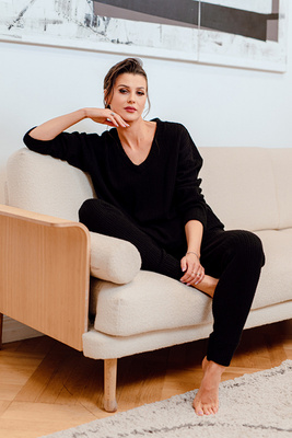 Piżama damska Veronica - bawełniana z czarną koszulką z rękawkiem