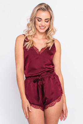 Piżama damska Astrid - satynowa bordowa na regulowanych ramiączkach