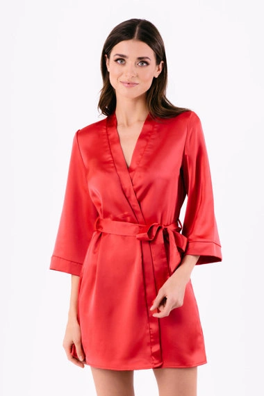 Szlafrok damski Pocahontas - satynowy czerwony z rozszerzonymi rękawami