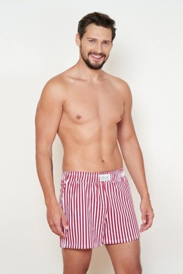 Szorty męskie w paski - biały i bordowy