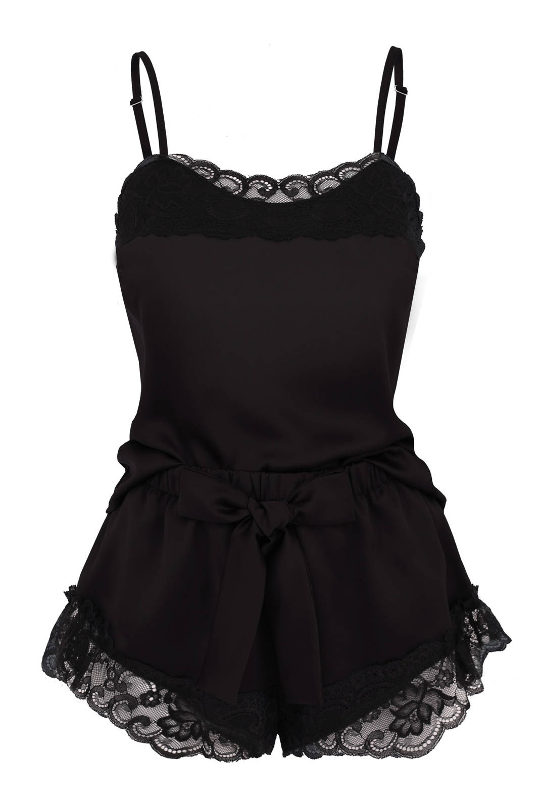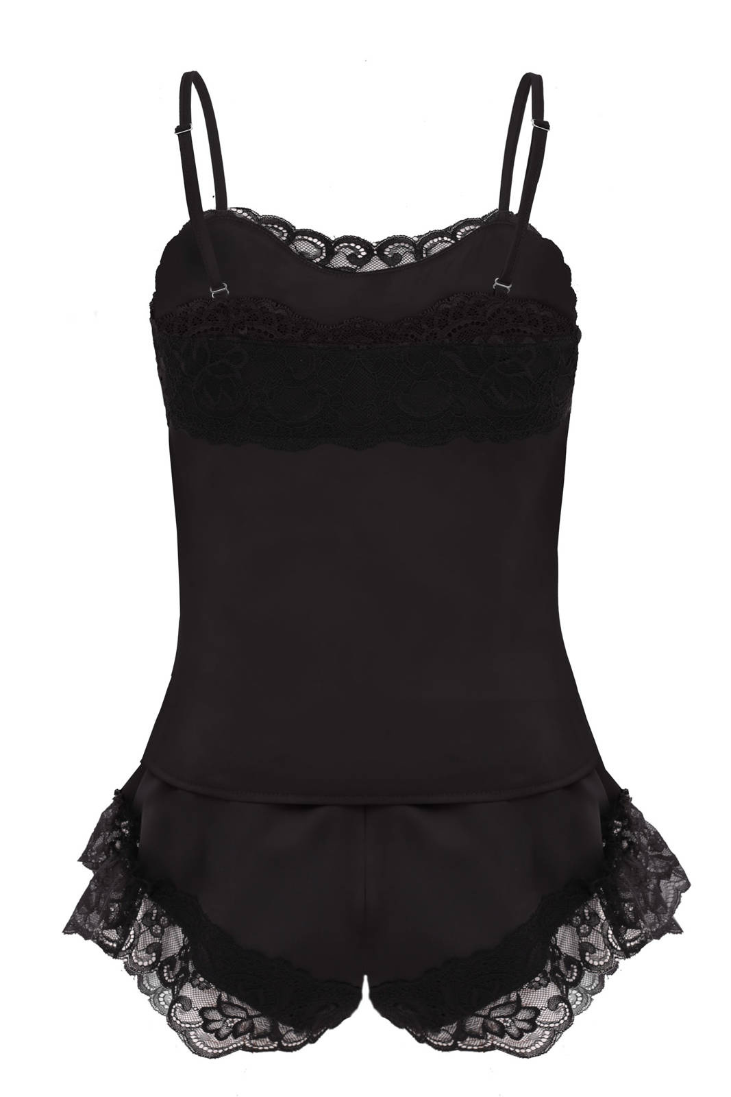 • Piżama damska Ophelia - satynowa na regulowanych ramiączkach czarna