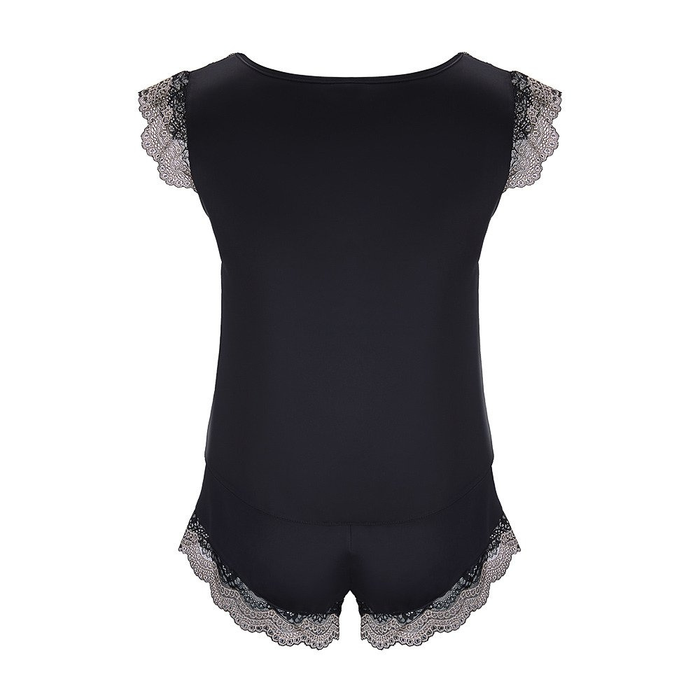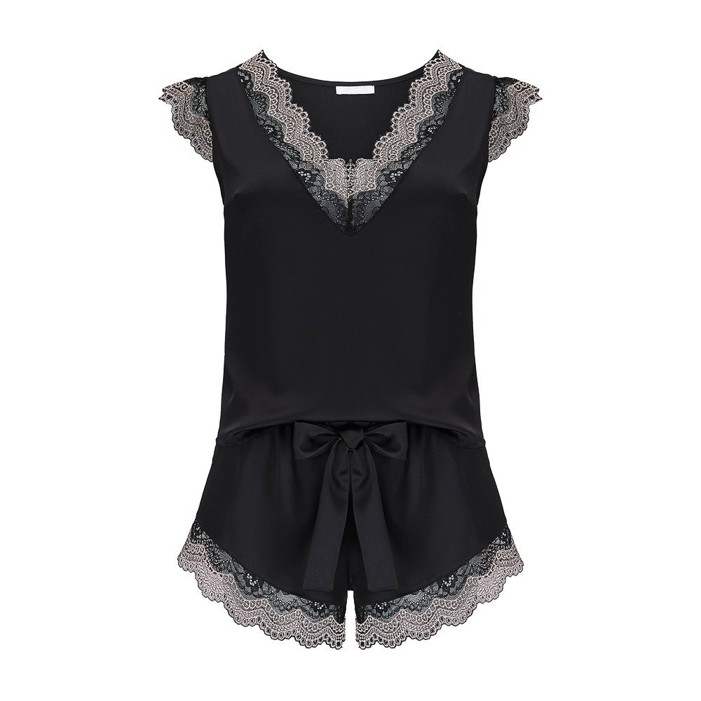 • Piżama damska Wendy - satynowa czarna z dwukolorową koronką