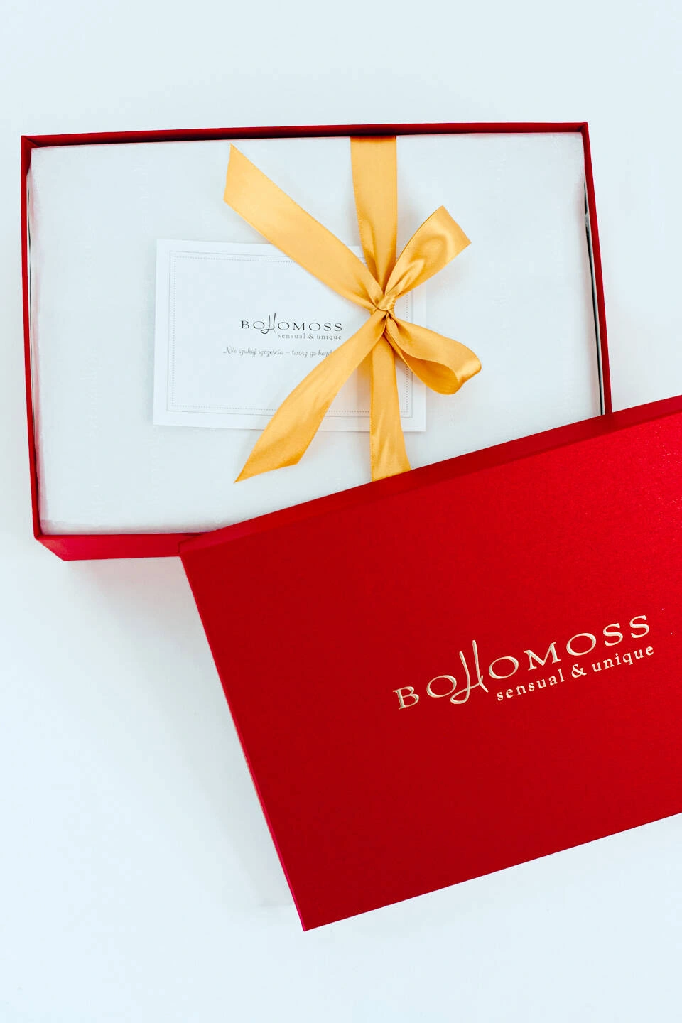 Pudełko prezentowe czerwone - ze złotym logiem Bohomoss